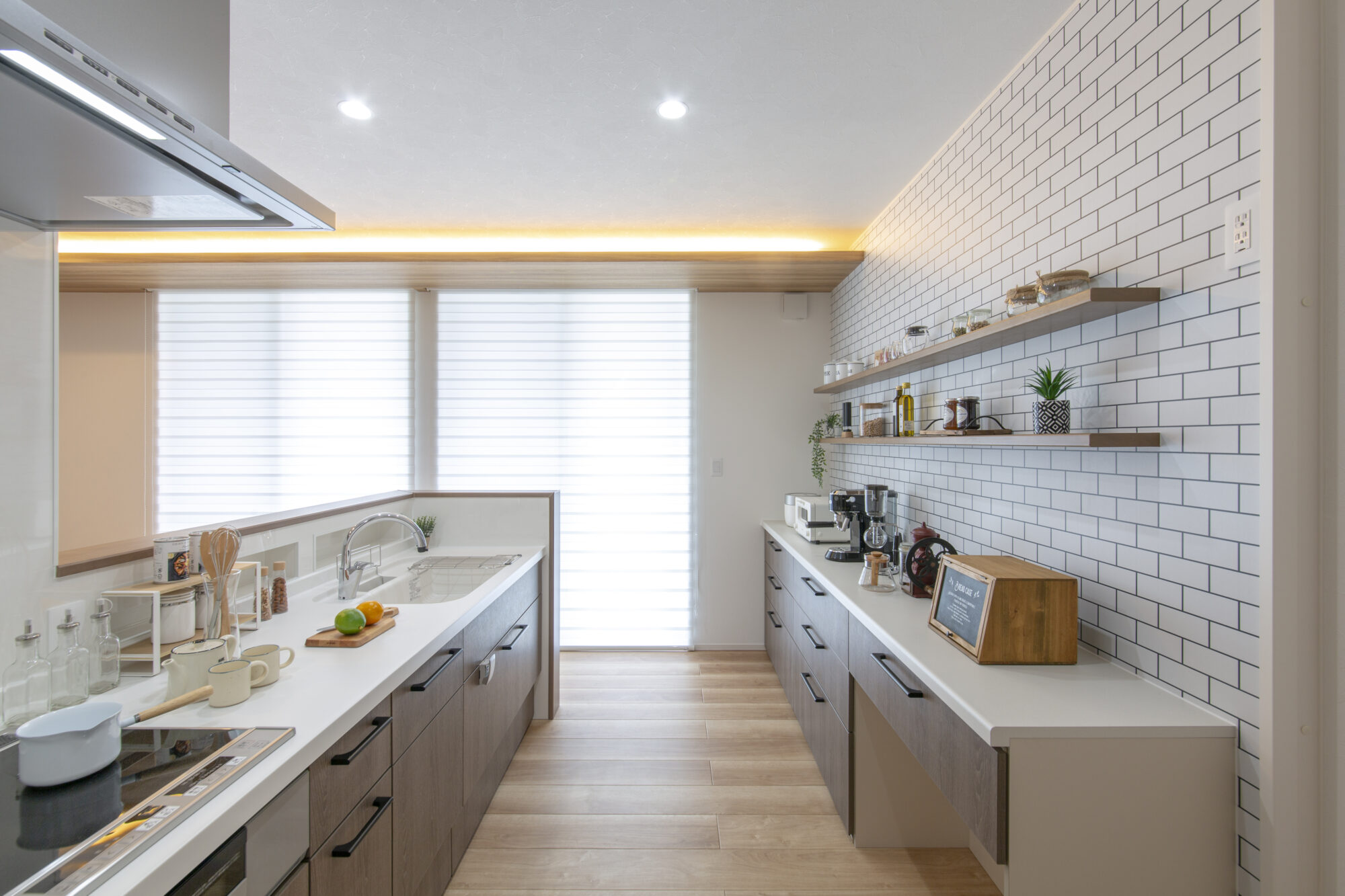 キッチンを中心に家事動線にもこだわって、ご夫婦の希望をカタチにしました。