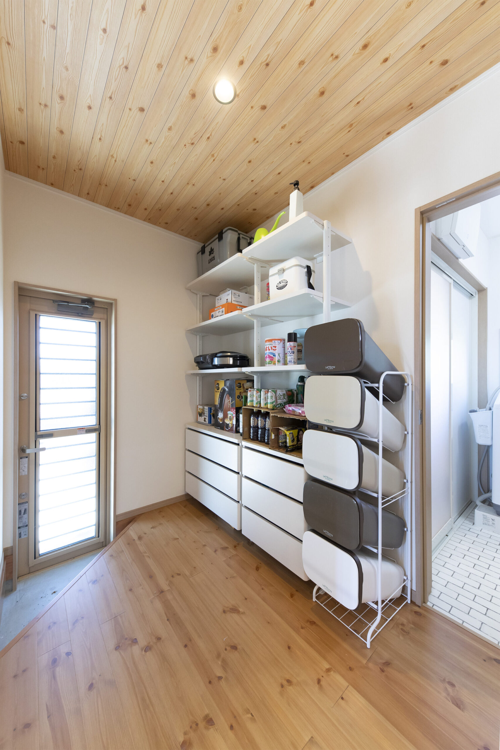 【Check4】大きなパントリーには勝手口もつけて、買い物から帰ってすぐに収納できる動線がこだわりです。