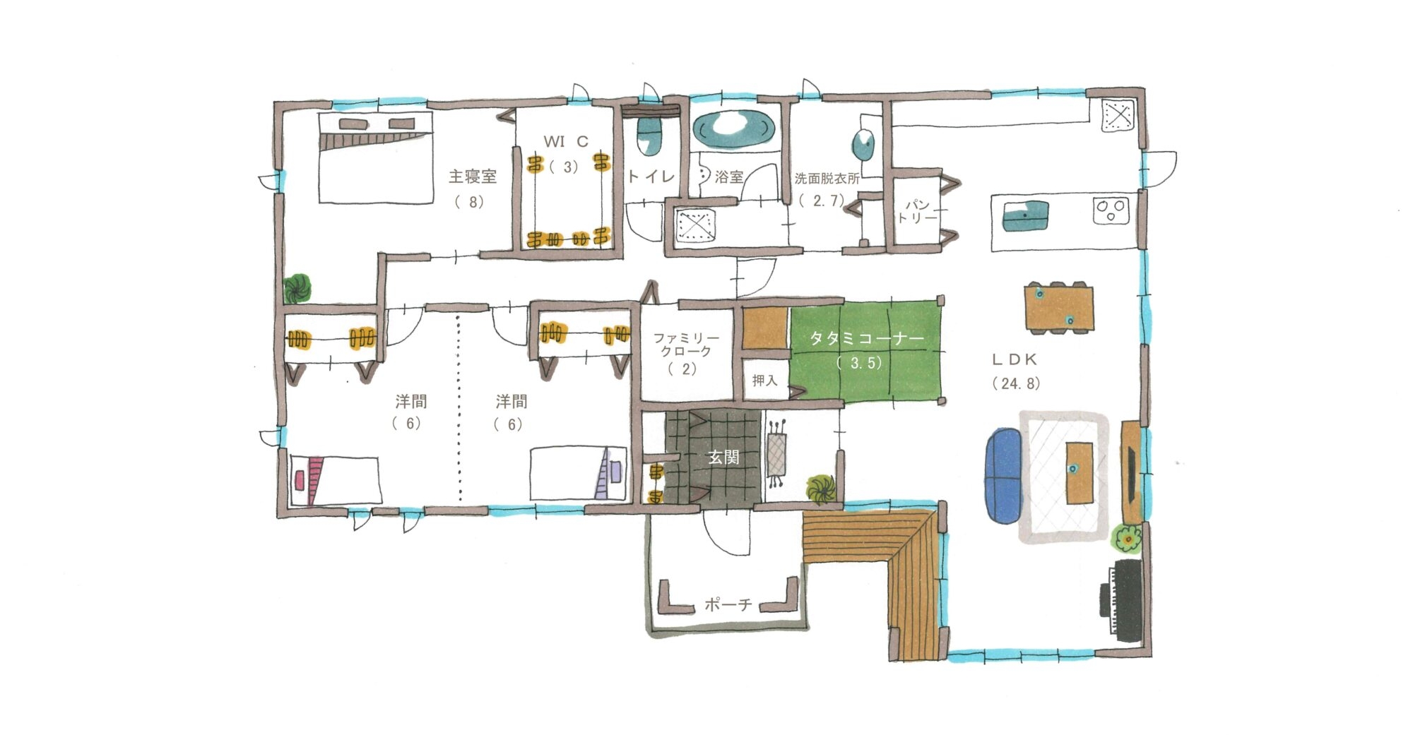 【Check2】LDKの中にも3畳のタタミスペースでくつろぎを作れる空間を。