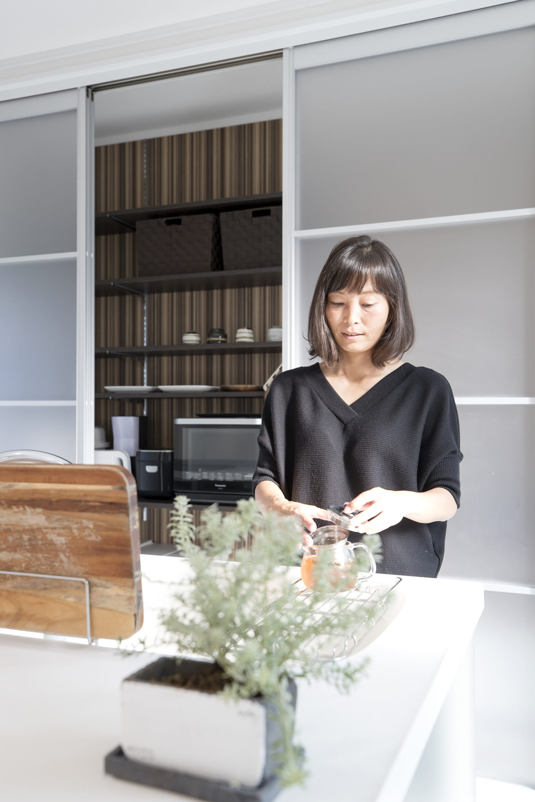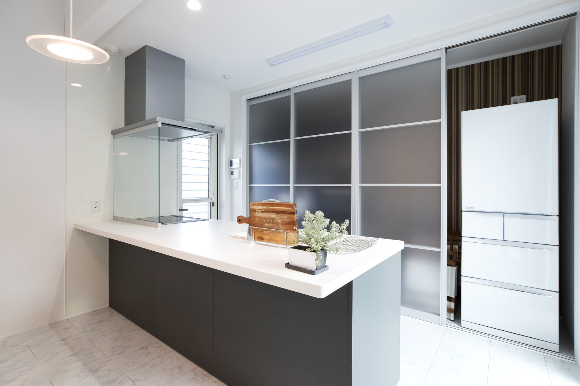 【Check2】キッチン背面は使わない時は引き戸を閉めてスッキリ。