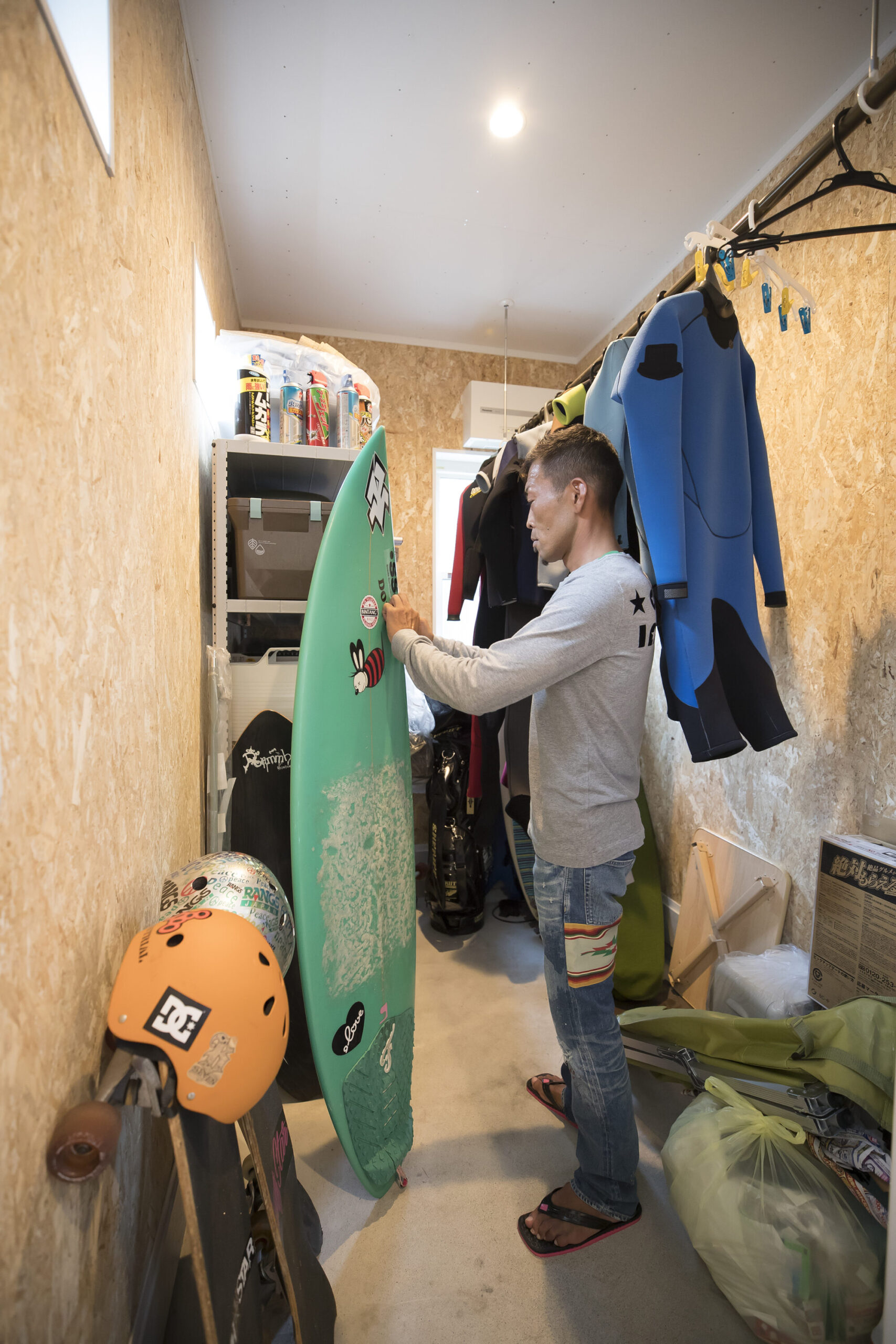 【Check4】趣味のサーフィンのための、ニオイが発生しない内装材で仕上げた土間収納。