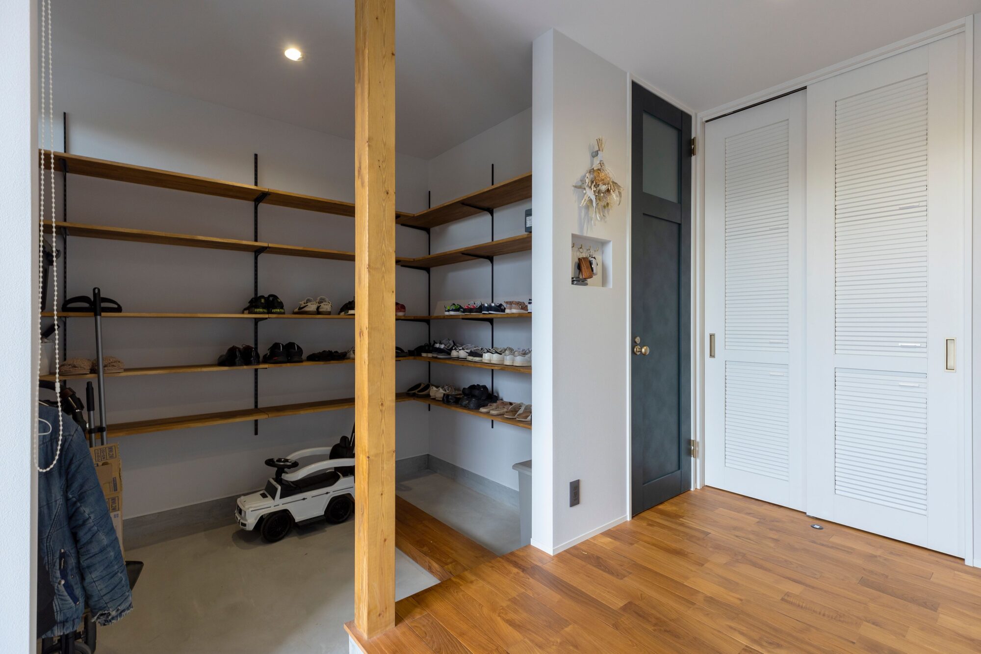 土間収納には、ベビーカーなど日常で使うものがたっぷり収納できます。