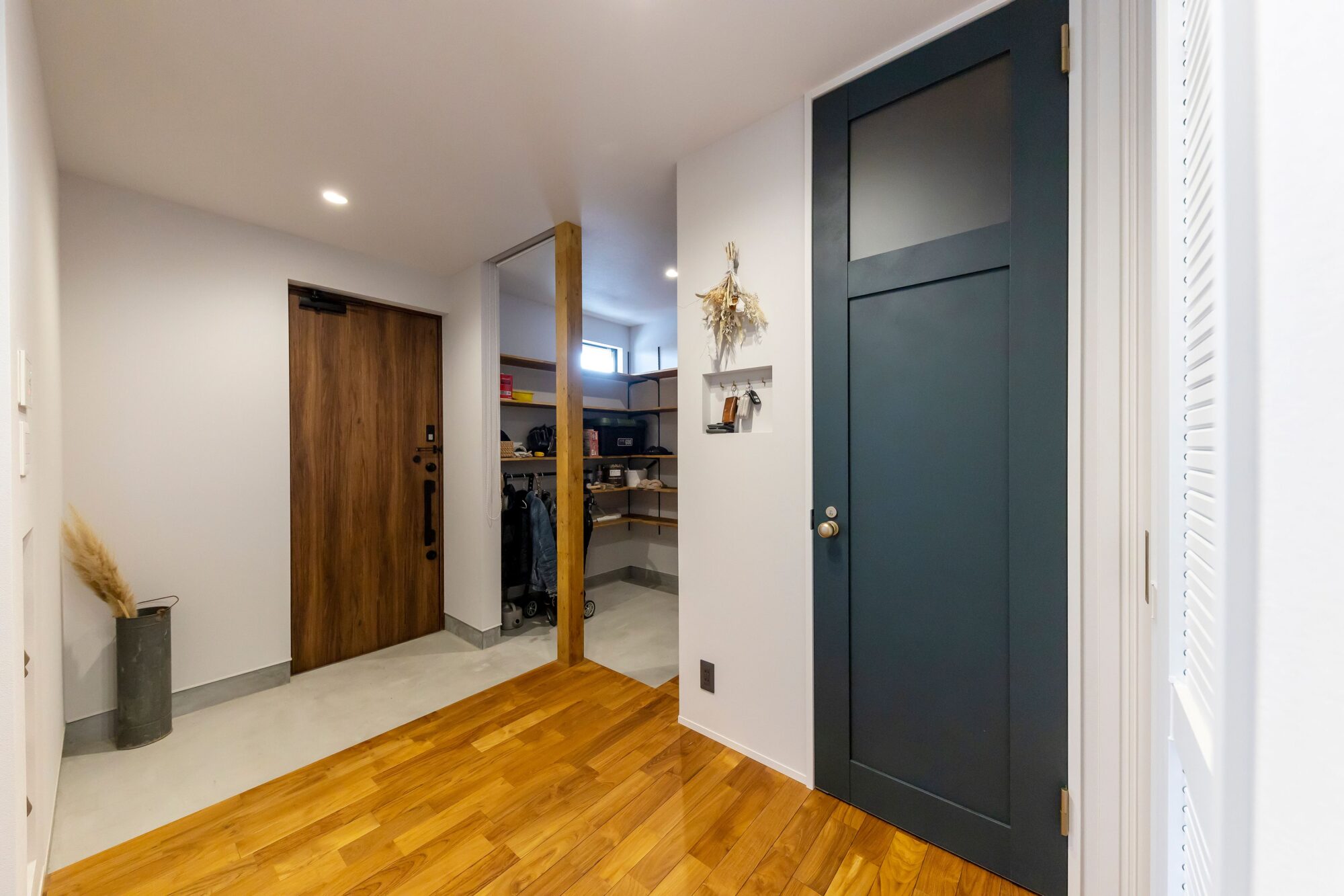 玄関に入ると、コンクリート仕上げのモダンな空間が。