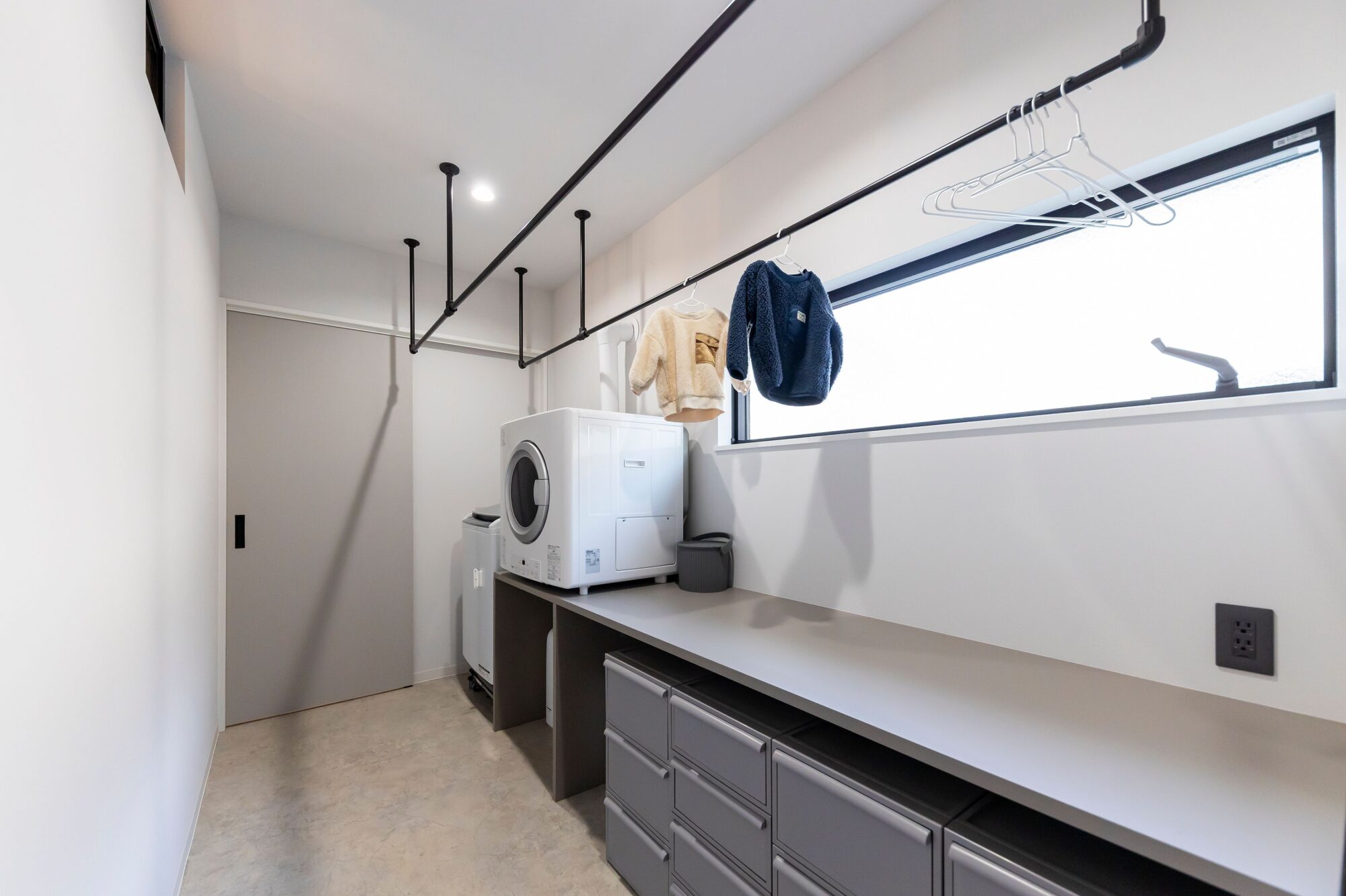 洗面のすぐ隣には、家事ラクが叶うランドリースペース。