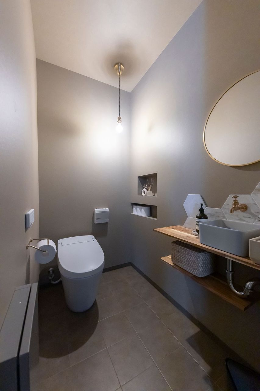 素敵な造作風洗面と、大きな鏡が特徴的です。