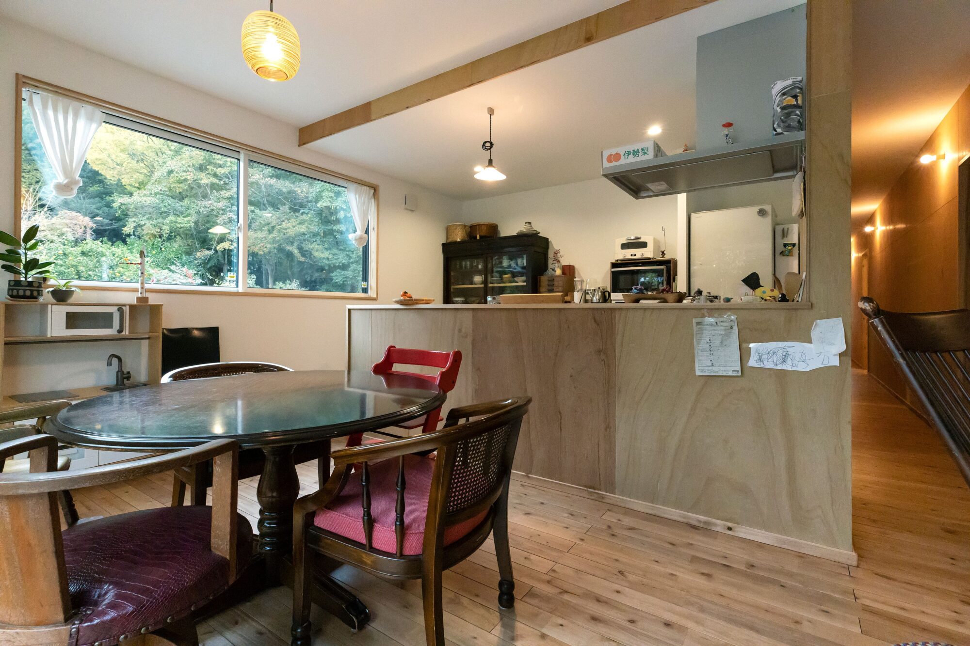 アンティークなダイニングテーブルとチェアがしっくりくるダイニングスペース。