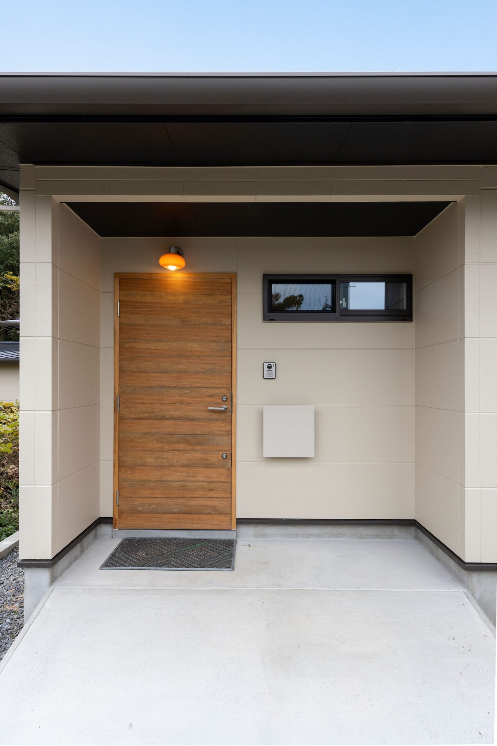 家に入る瞬間からこだわりを感じる、温かみのある玄関ドア。