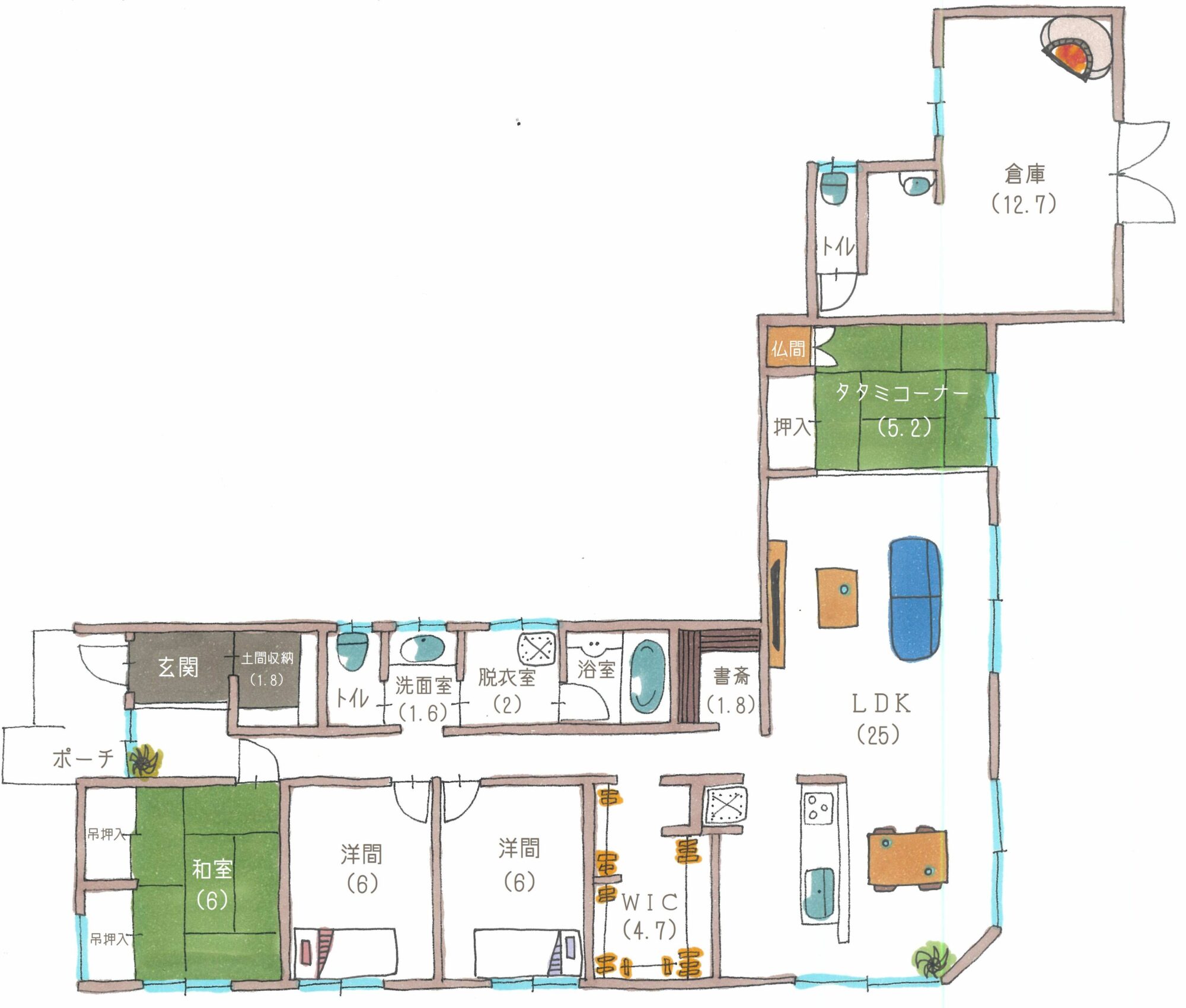 広々としたL型の間取りは、家族のコミュニケーションを大切にした設計です。